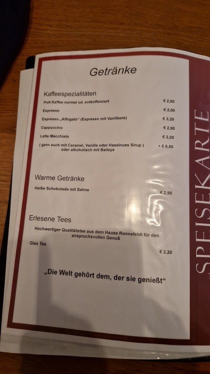 The menu offers a variety of food and drink options suitable for different times of the day, including breakfast, coffee breaks, and light meals. Visitors can expect a selection of baked goods such as cakes, including specialties like Schwarzwälderkirsch Torte, crêpes, and chocolate cake. The menu also features savory items, for example, Tiroler Käse Suppe (Tyrolean cheese soup).